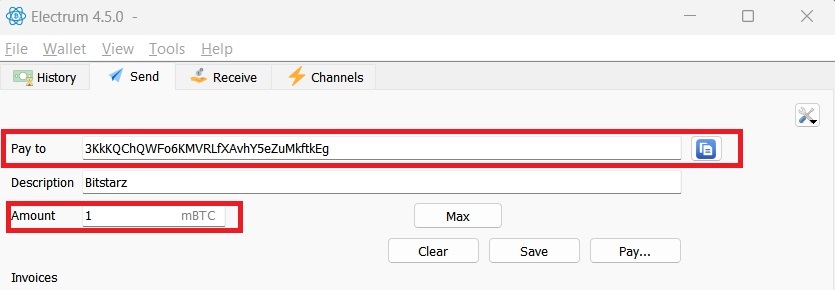 Copy the deposit address and enter it into your wallet/exchange as the address to transfer funds to. In my case, I used Electrum, so in the “Send” section I input the address to the “Pay to” field and entered in the “Amount” of 1mBTC. I also added a description to keep track of what the transaction was for.