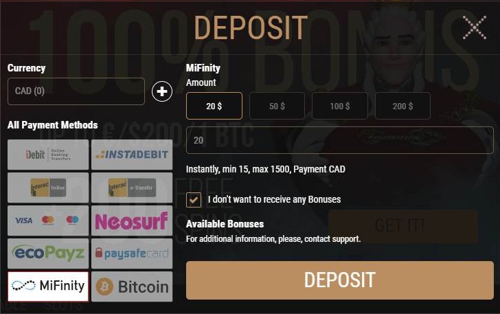 On the topic of deposits and withdrawals, MiFinity is used and accepted in over 170 countries across the world. That means you will be able to make transactions in one out of the many currencies offered by the service.