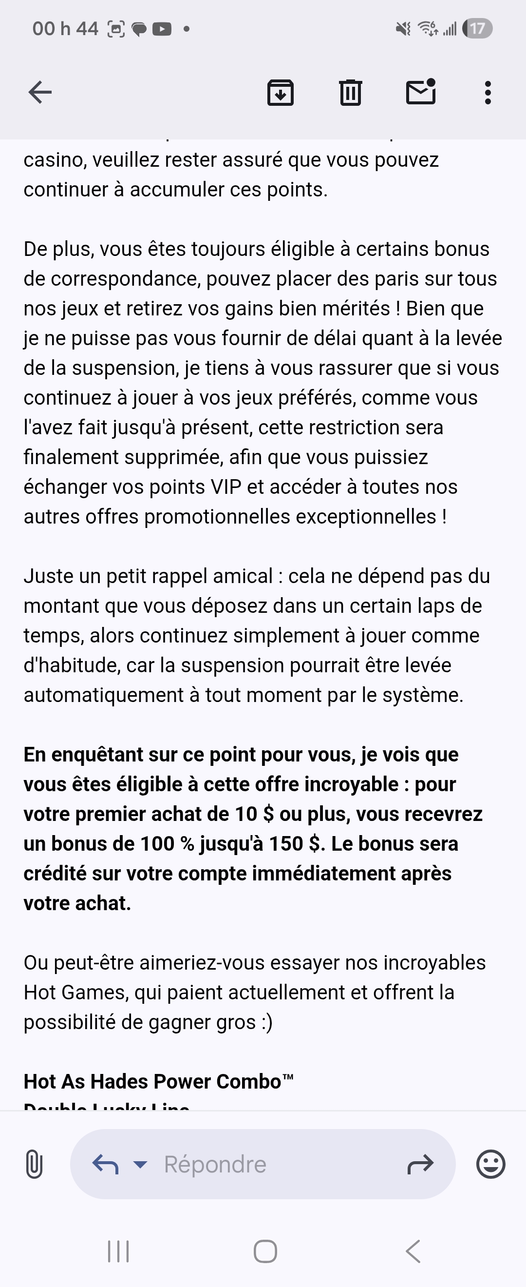 Sa fait des mois que mes point vip son suspendu jai mon compte ouvert avec eux sa fait plus que 6 ans , j’ai fait 9 mois quil me repete la meme chose de continuer a jouer pour leve la suspention je depose a tout les jour je gagne ses gain et avec gain gagne je le joue tout a leur casino rien me change jai meme ete gradee de status vil rien ne change il me dise la meme chose casino rewards yukon gold de vrais cesser leur operation il anarque tellement de gens